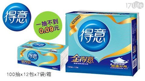 只要699元(含運)即可享有【金得意】原價1,253元極韌連續抽取式花紋衛生紙1箱,每箱內含:100抽x12包x7袋。
